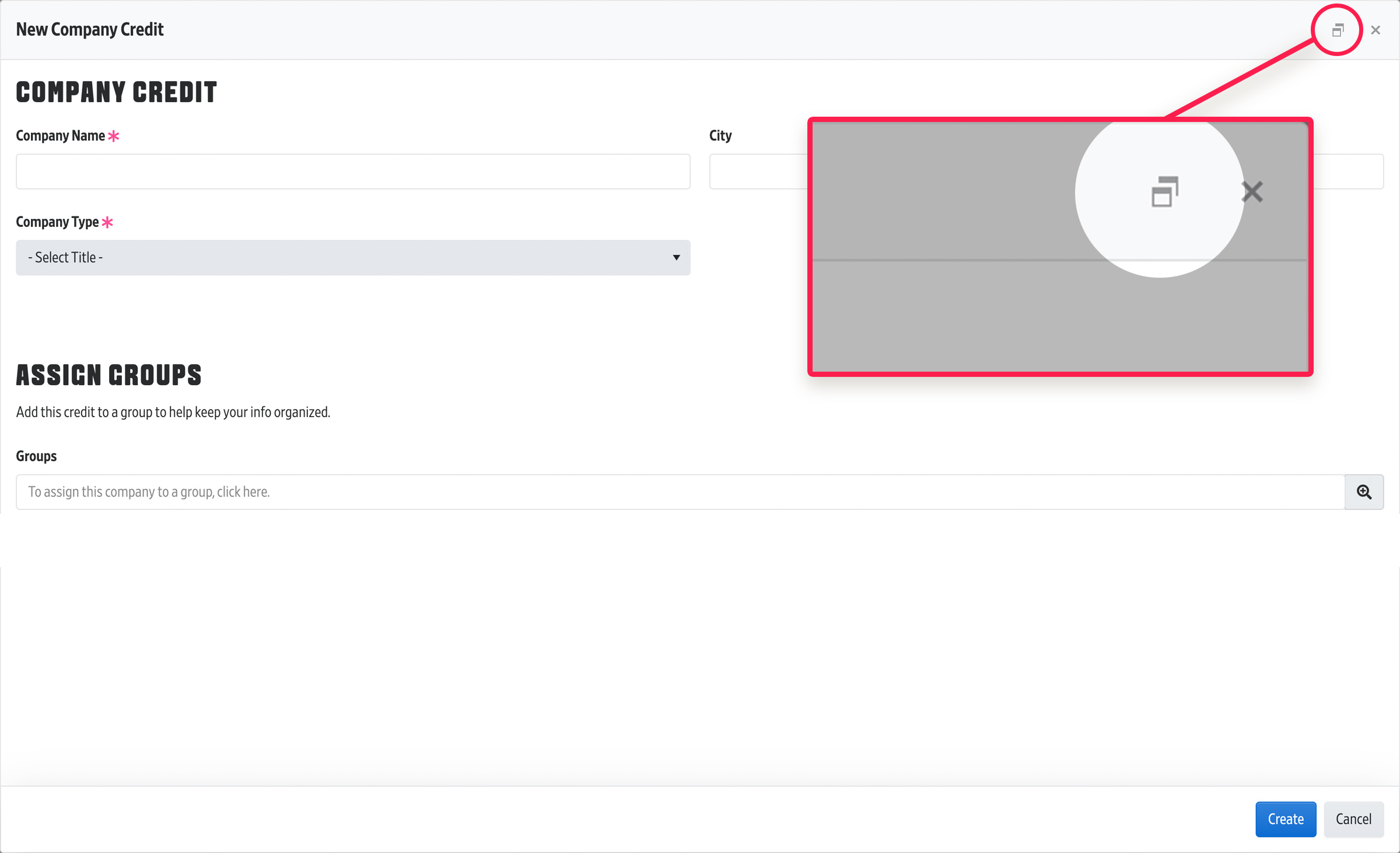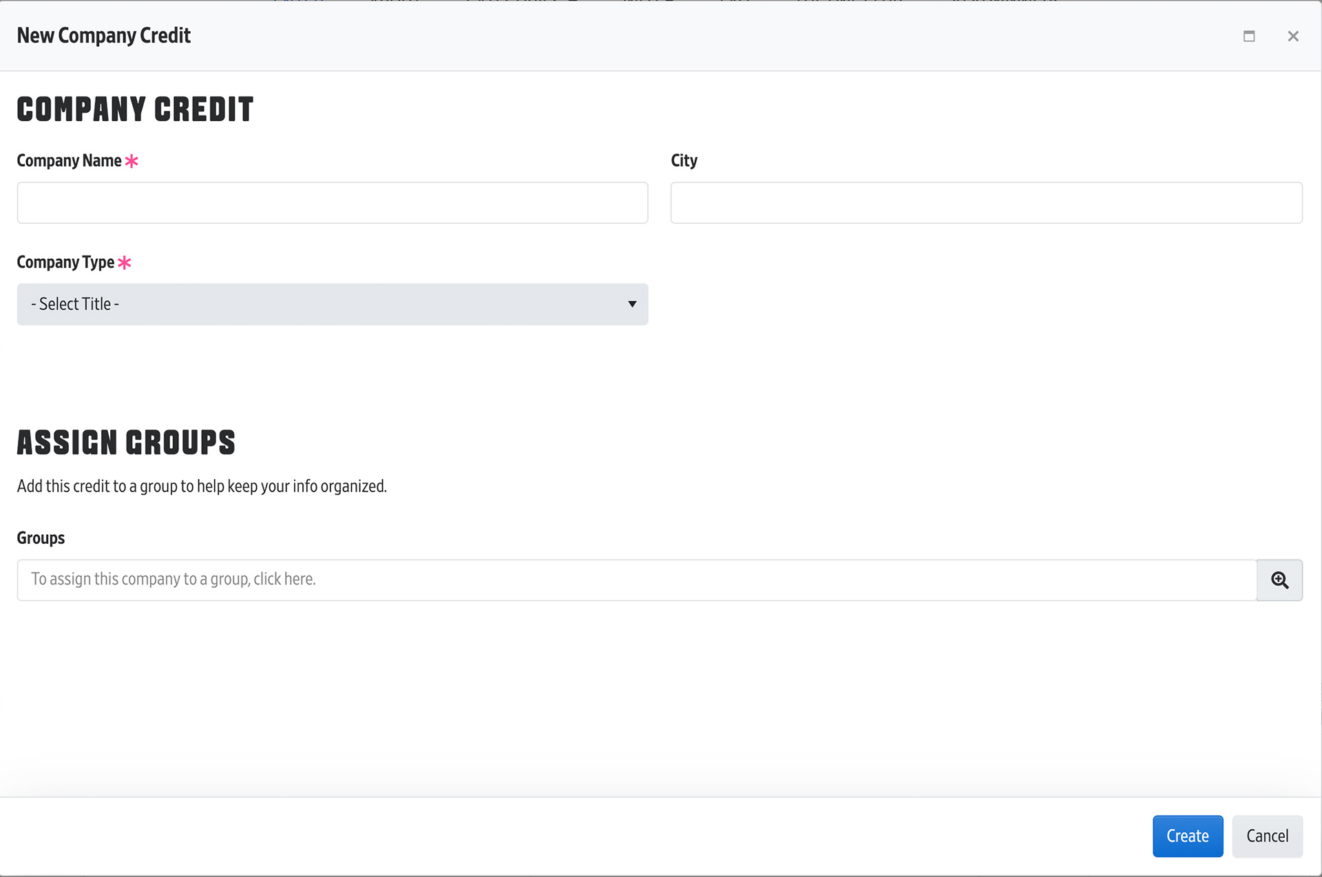 - Company Name and Type are required for each company credit. City is optional, but highly recommended.
