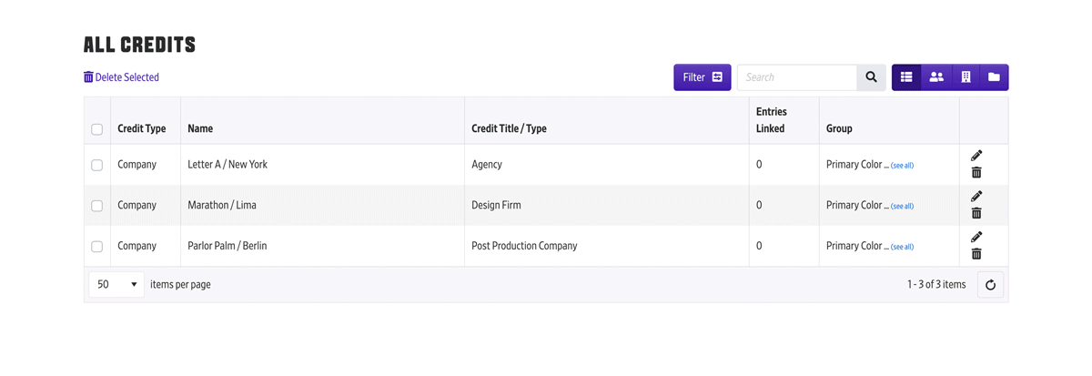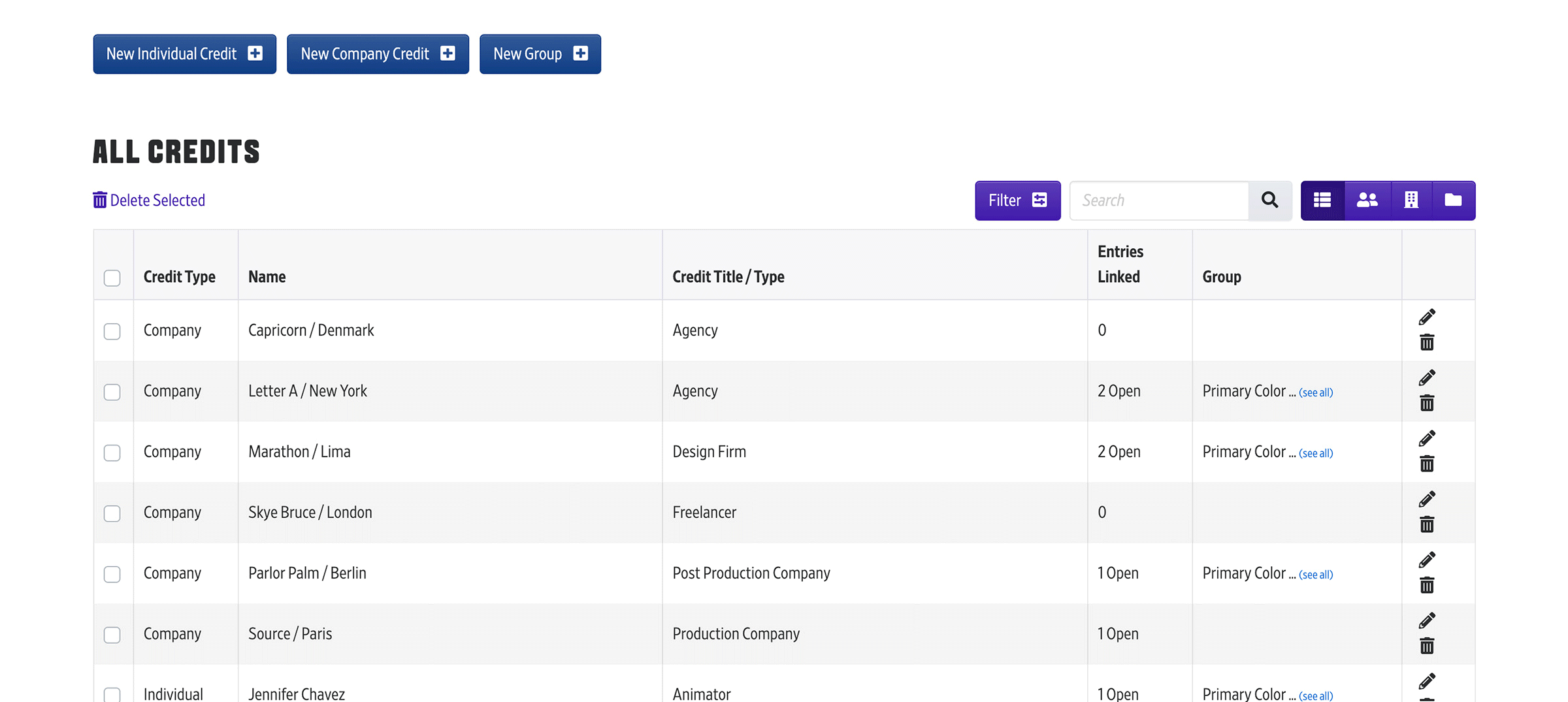 - Companies can be attached to your entry as Primary, Secondary, or in your full credits list.