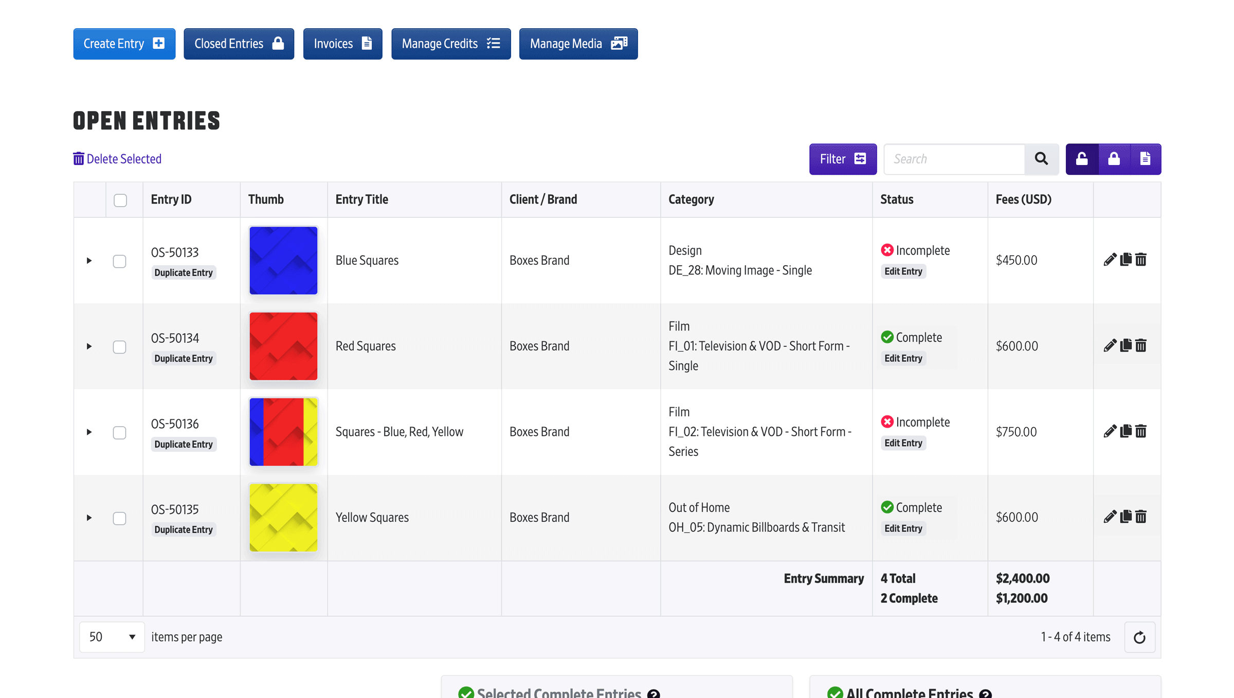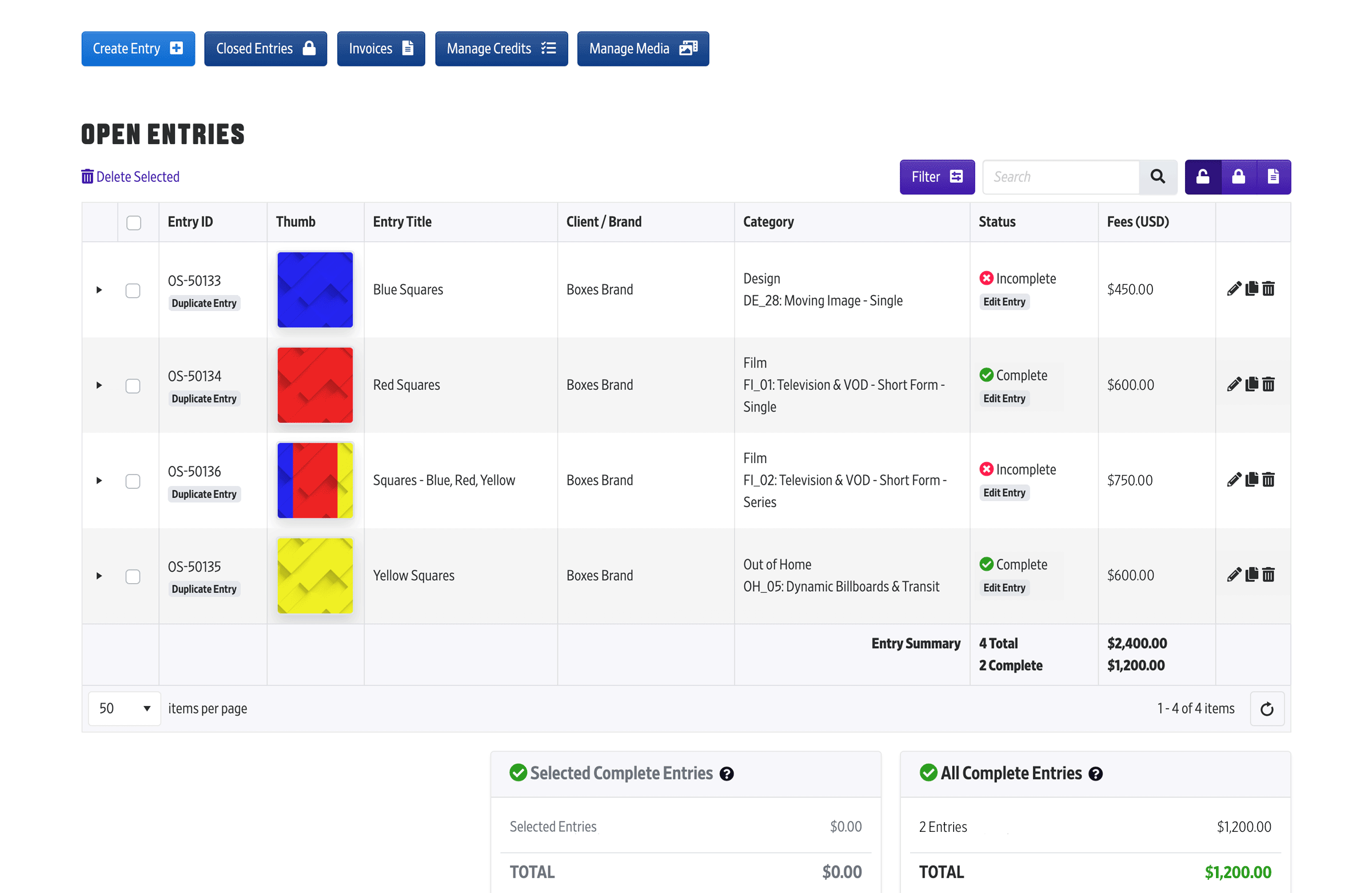 - Only the Primary Credit is required to complete an entry. You can close out and submit your entries without adding Secondary or additional credits. These credits can be added or edited any time before the Finalists are announced.